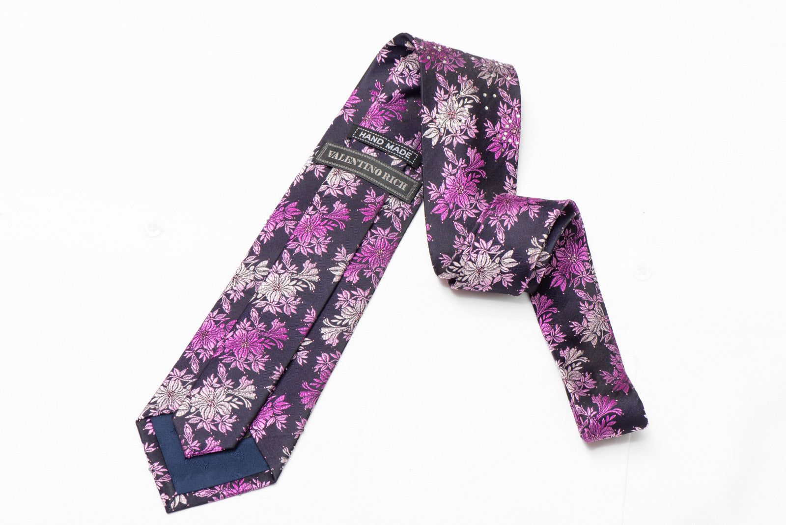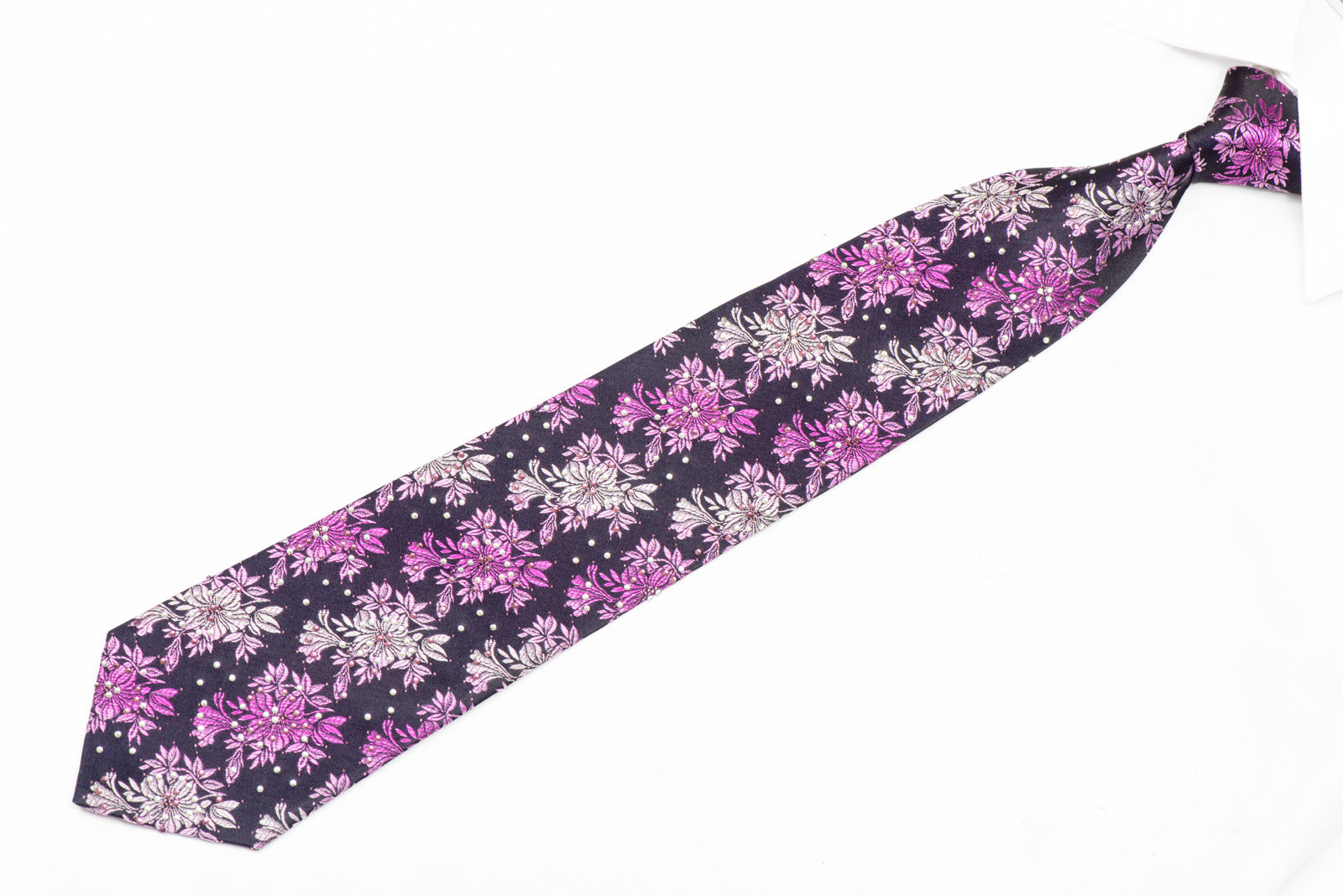 Material - SilkDesign - FloralColor - Silver, PUrple, BlueLength - Classic (48 in.-60 in.)(145cm-153 cm)Width - Classic (3 1/4 in.-3 3/4 in.)(8 cm-9.5 cm)Special Features - Rhinestones, Sparkles