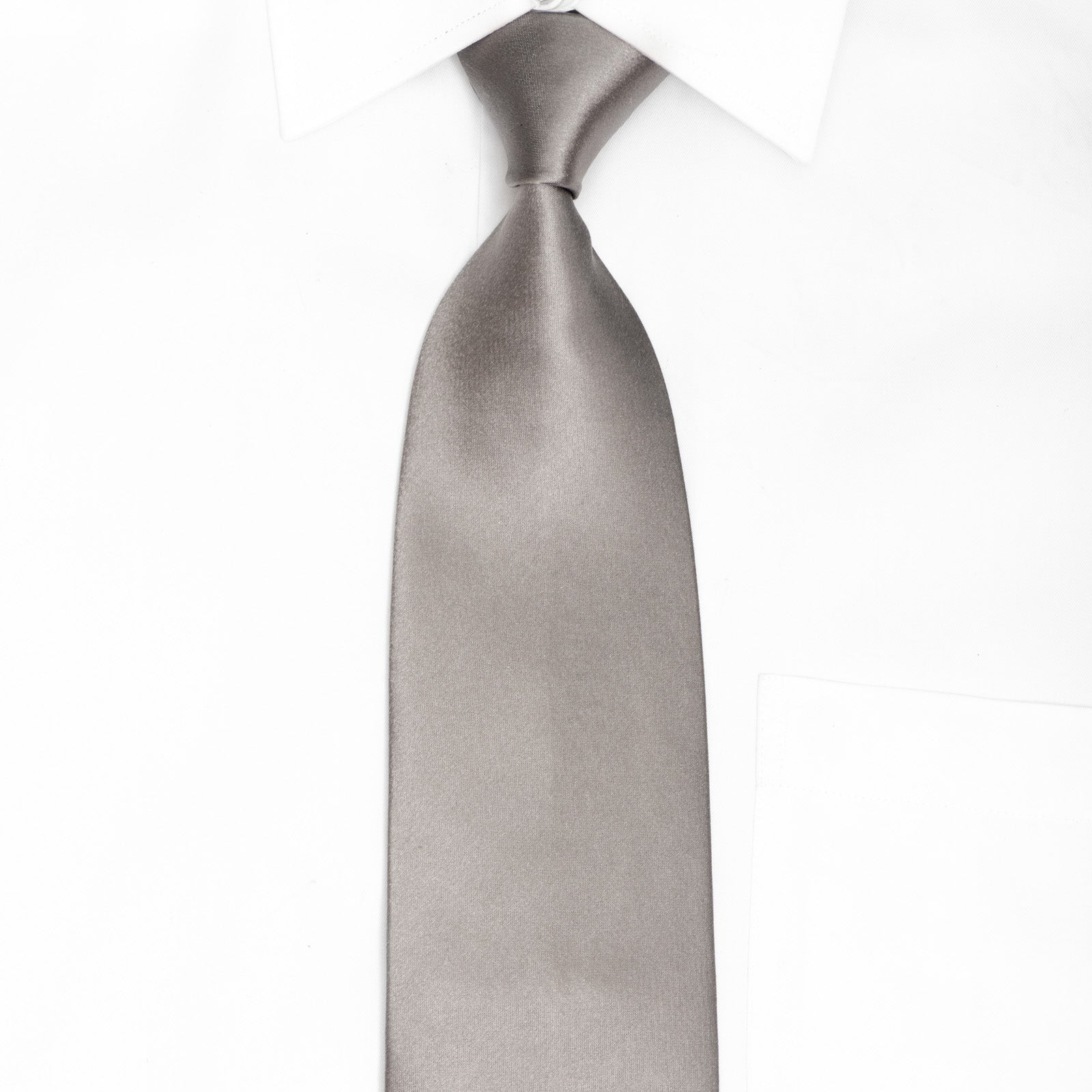 The smooth, monochromatic silver tone offers versatile elegance—pair it with charcoal suiting for timeless contrast or layer with tonal grays for a modern, editorial look. The satin weave construction delivers a supple drape and luxurious hand-feel that distinguishes premium neckwear.