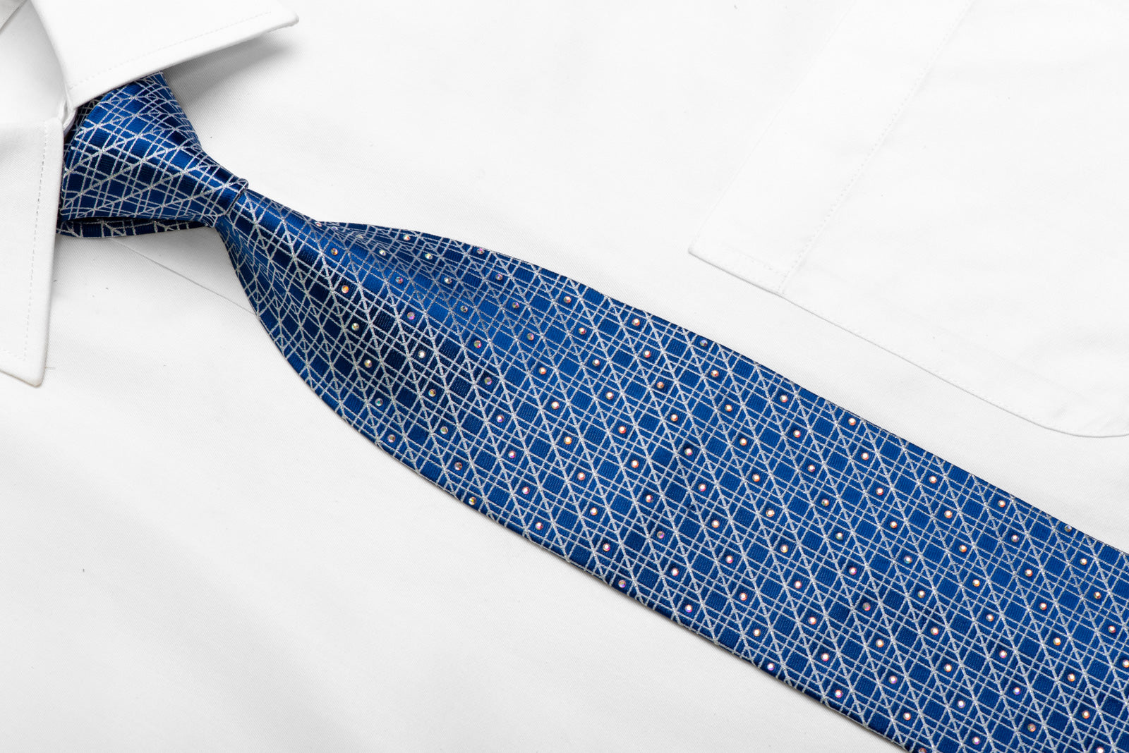 Material - SilkDesign - TrellisColor - Silver, BlueLength - Classic (57 in.-60 in.)(145 cm-153 cm)Width - Classic (3 1/4 in.-3 3/4 in.)(8 cm-9.5 cm)Special Features - Rhinestones, Silver Sparkles
