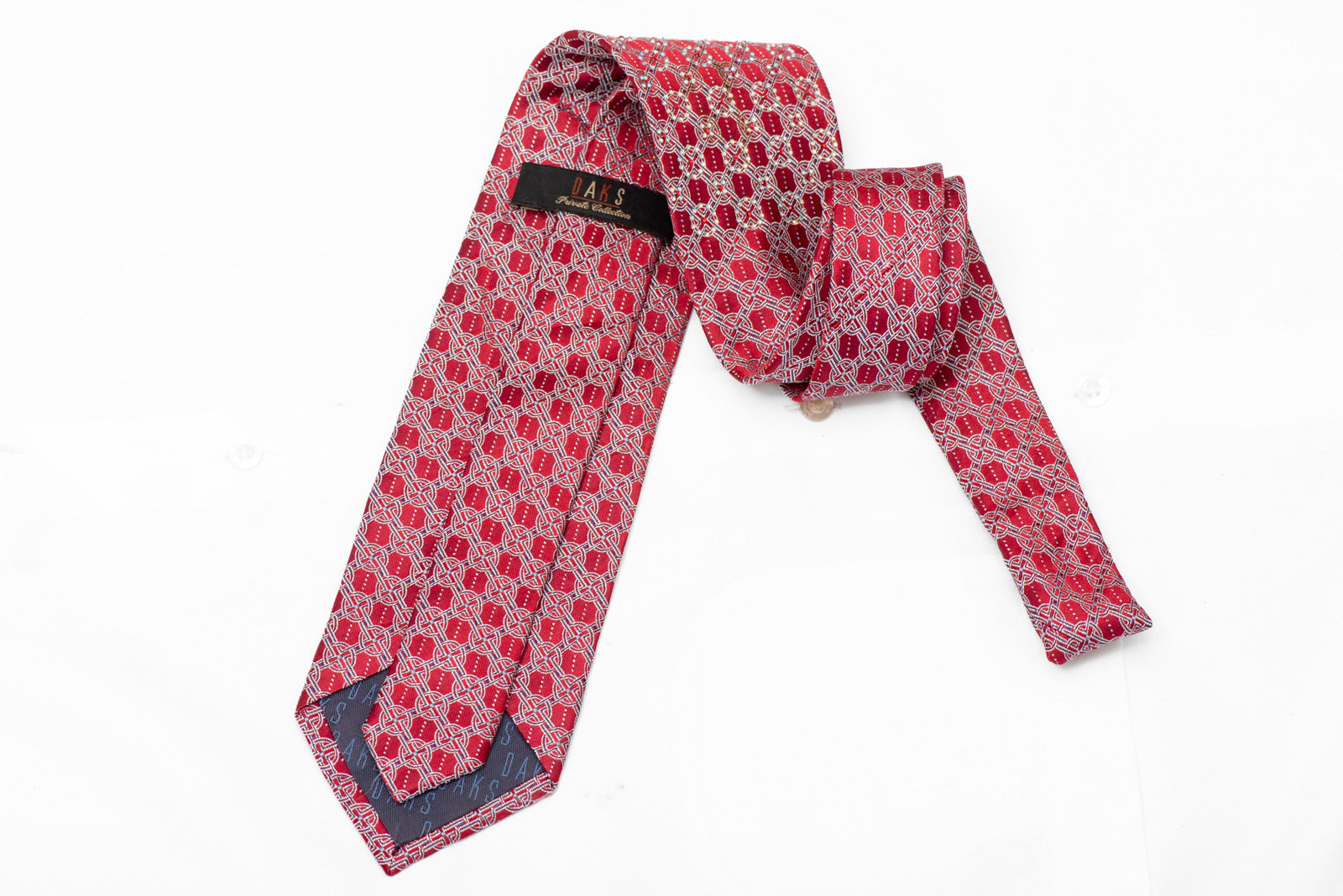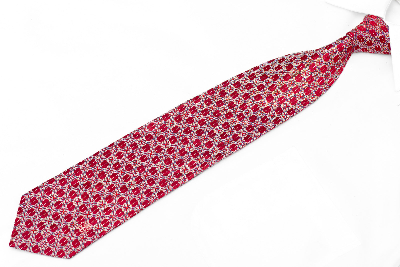 Silver Trellis On Dark Red Rhinestone Silk Tie With Silver
