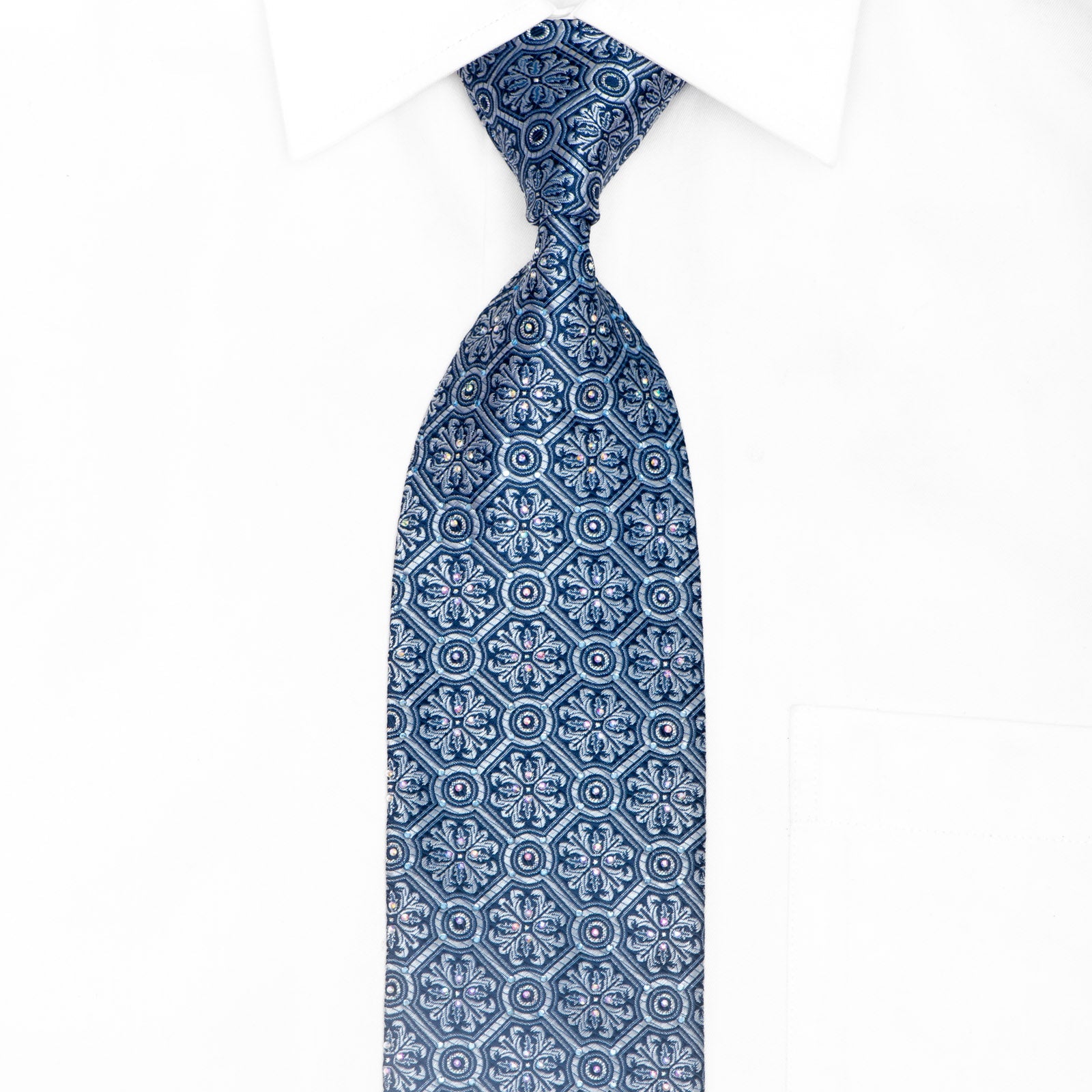 Add a touch of sparkle to your attire with our Blue Rhinestone Silk Necktie, featuring a charming Trellis & Cartouche design.